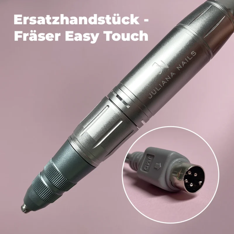 Das leistungsstarke Ersatzhandstück aus Metall für deinen Fräser JN – Easy Touch. Es besitzt eine ergonomische Form, ist vibrationsarm und mit einem Schnellspannverschluss ausgestattet – für einen unkomplizierten Bitwechsel.