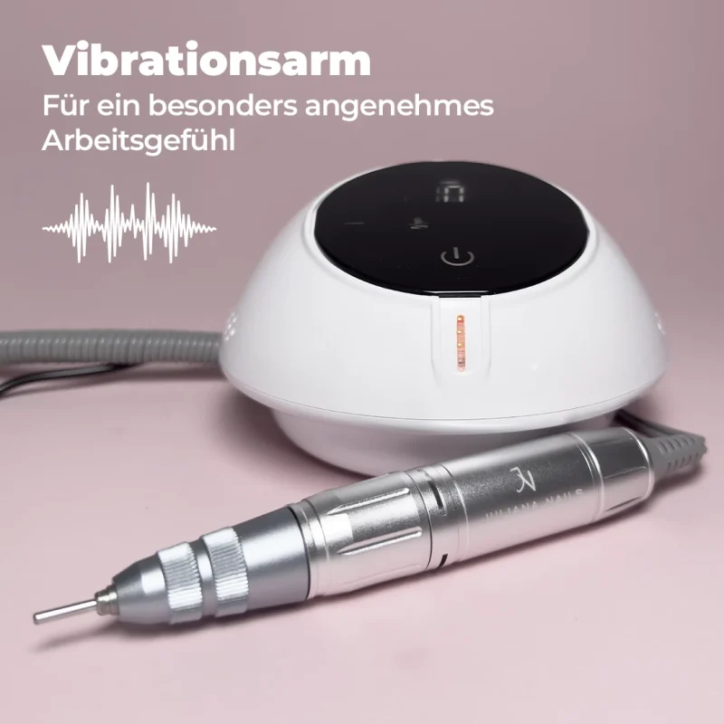 Dank der vibrationsarmen Technologie bietet das Handstück ein besonders angenehmes Arbeitsgefühl. Die reduzierte Vibration sorgt für eine ruhige Handhabung und minimiert Ermüdungserscheinungen, selbst bei längeren Arbeitssitzungen.