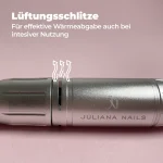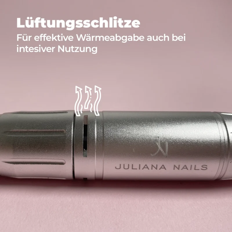Die gleichmäßig verteilten Lüftungsschlitze sorgen dafür, dass entstehende Wärme effektiv abgeführt wird. So erwärmt sich das Handstück langsamer und ermöglicht dir ein komfortables Arbeiten, auch bei intensiver Nutzung.