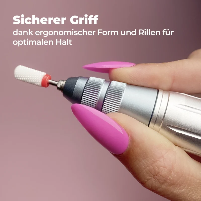 Grundsätzlich passen all unsere Fräser Aufsätze in dieses Handstück. Für optimale Ergebnisse solltest du jedoch deinen Fräser Bit an das Material und den Arbeitsbereich anpassen. In unserem Sortiment findest du daher spezielle Bits für die Nagelhautentfernung, zum Abtragen von Gel Lack sowie stärkere Bits für Gel und Acryl.
