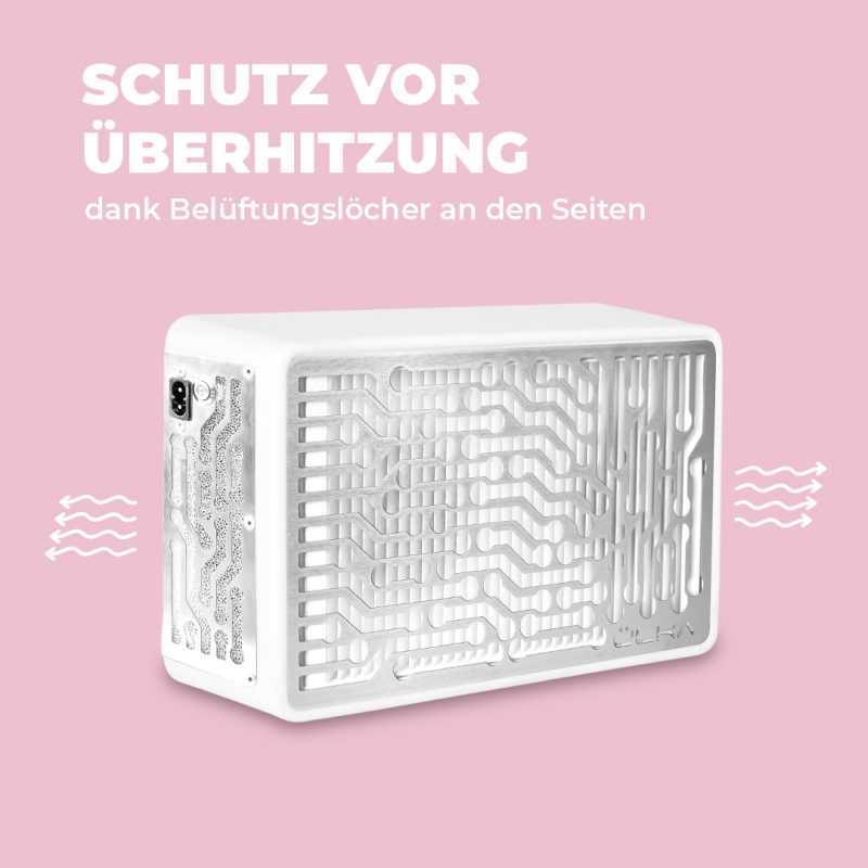 Dank der Belüftungslöcher an der Geräteseite bietet die Staubabsaugung ÜLKA – Nano eine effiziente Wärmeableitung. Dadurch wird das Gerät zuverlässig vor Überhitzung geschützt, was seine Lebensdauer verlängert. Selbst bei langen Arbeitssessions bleibt das Gerät sicher und leistungsstark!