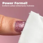 Mit diesem Nagellackentferner sagst du bye bye zu langem Rubbeln. Denn dank der innovativen Power-Formel hat selbst hartnäckiger Glitter-Nagellack keine Chance. Ein paar Sekunden Einwirkzeit reichen und schon lassen sich all deine Nagellacke spielend einfach entfernen.