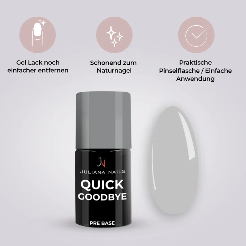 Das Entfernen von Gel Lack ist oft zeitaufwendig und nervig? Nicht mit unserer Quick Goodbye – Pre Base! Sie verkürzt die Einwirkzeit des Gel Lack Lösers um die Hälfte! Das bedeutet weniger Wartezeit und ein deutlich schnelleres Ablösen deiner UV-Maniküre – ideal für alle, die Wert auf Effizienz legen!