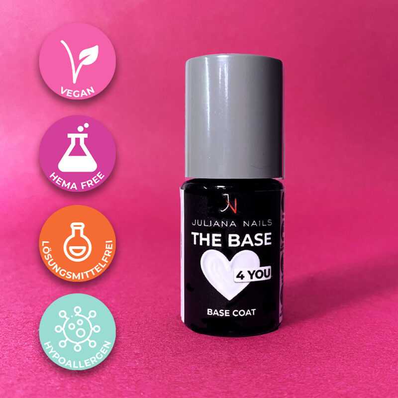 Der Unterschied liegt in der einzigartigen Formulierung. Der Gel Lack 4 YOU besitzt eine ausgesprochen sanfte, vegane Formulierung und kommt ganz ohne HEMA, TPO und Lösungsmittel aus. Perfekt für Nailqueens, die empfindlich auf einen dieser Inhaltsstoffe reagieren bzw. auf vegane Produkte wert legen. Klassischer Juliana Nails Gel Lack begeistert mit einer Haltbarkeit von bis zu 5 Wochen. Unser hypoallergene Gel Lack 4 YOU mit ca. 3 Wochen. Außerdem ist die Konsistenz unserer Gel Lack 4 YOU Linie besonders cremig und verläuft weniger schnell.