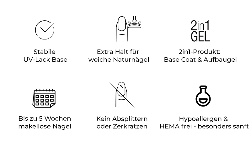 Wir haben hier bewusst auf Inhaltsstoffe wie z.B. HEMA verzichtet und auf hypoallergene Alternativen gesetzt. Daher ist diese UV-Lack Base besonders sanft zu deinen Nägeln. Ideal, wenn du auf einen dieser Inhaltsstoffe empfindlich/allergisch reagierst.