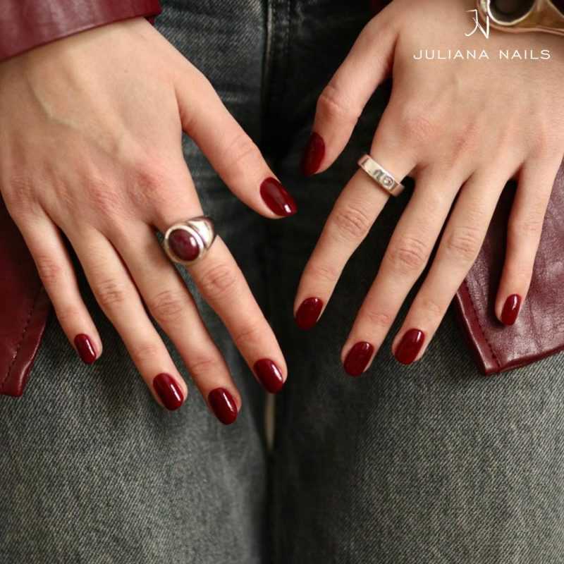 Unser Gel Lack Artist Room ist ein intensives Bordeauxrot, das Tiefe und Eleganz ausstrahlt.