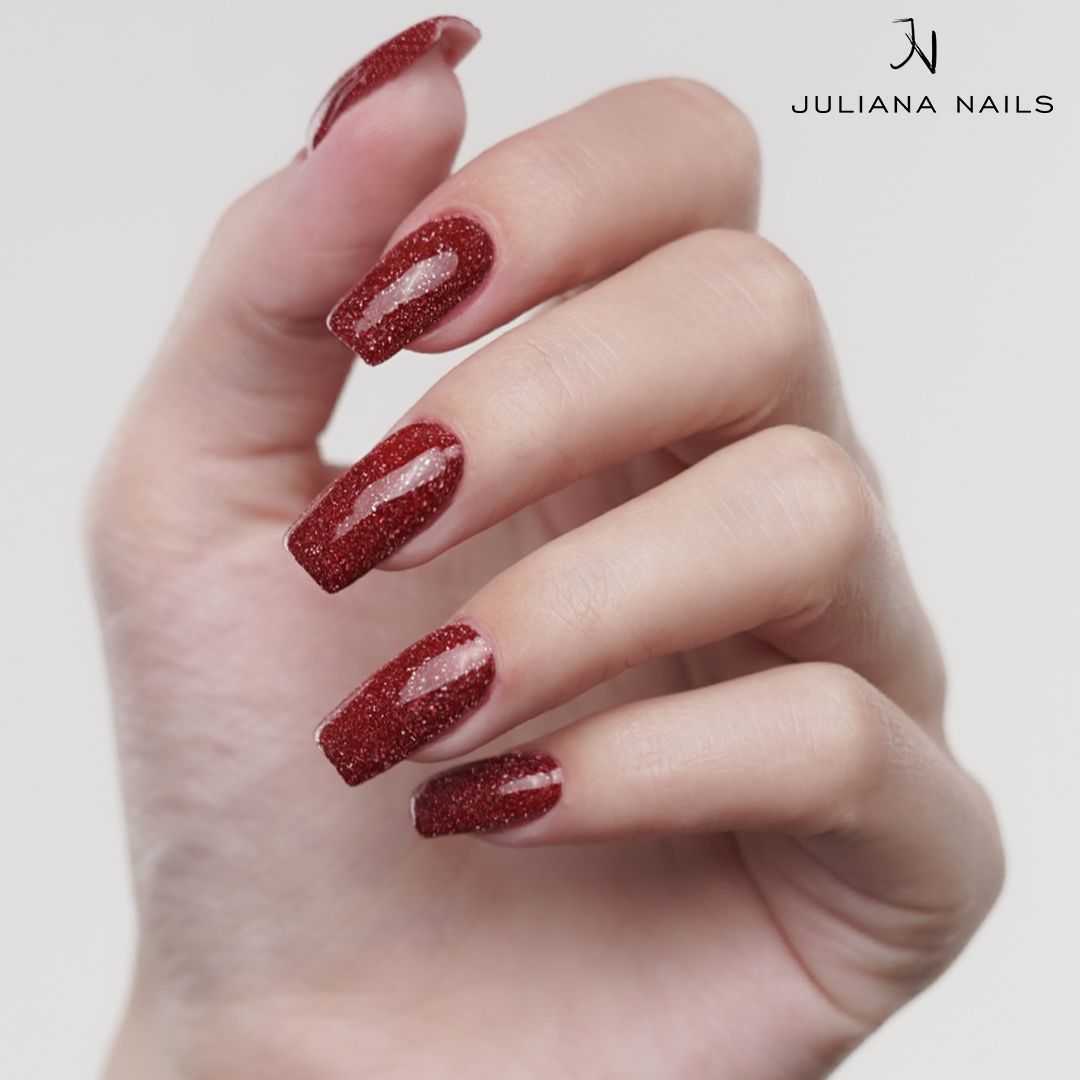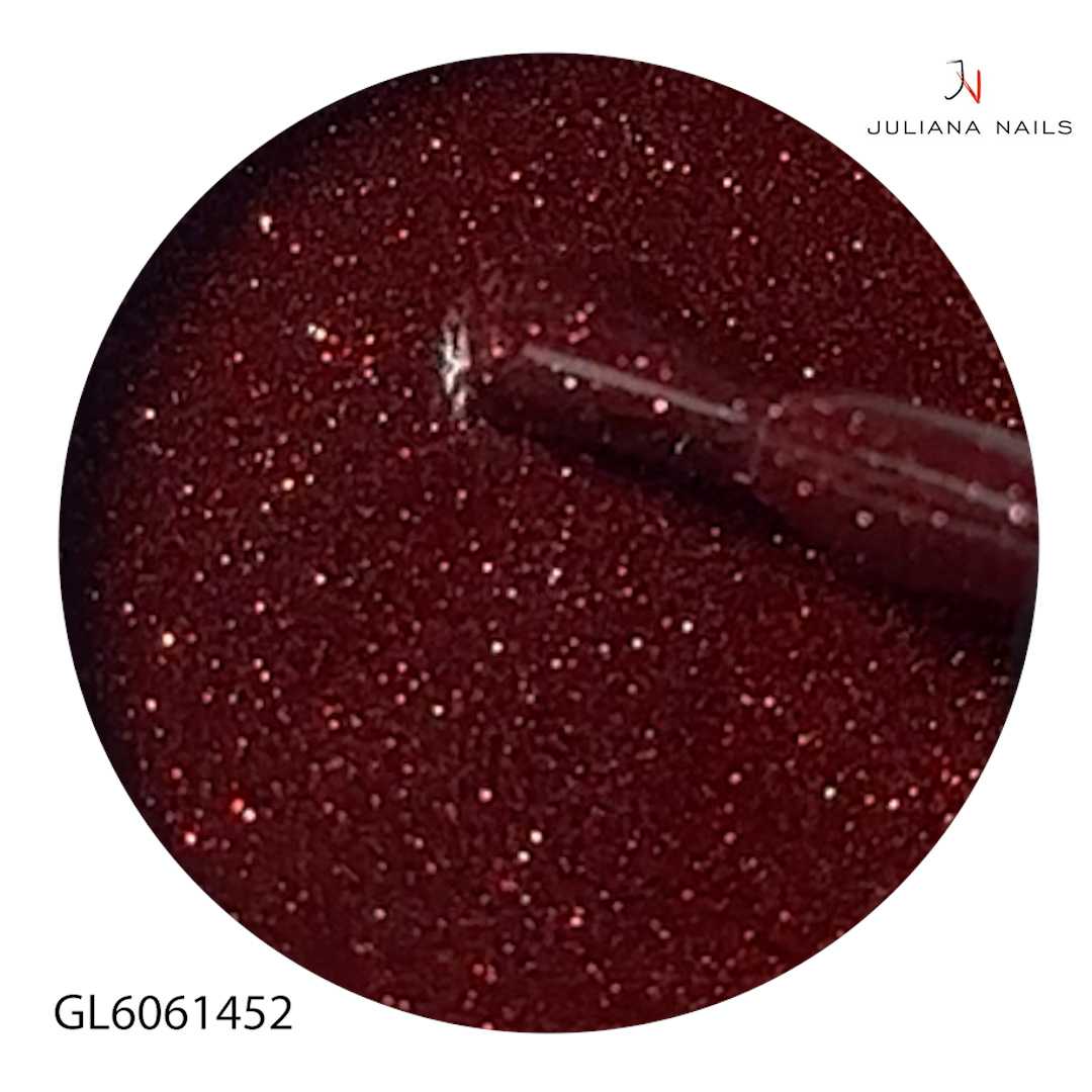 Unser Gel Lack Family Gathering ist ein dunkles Rot mit intensiv funkelndem Glitter in Rot und Silber.