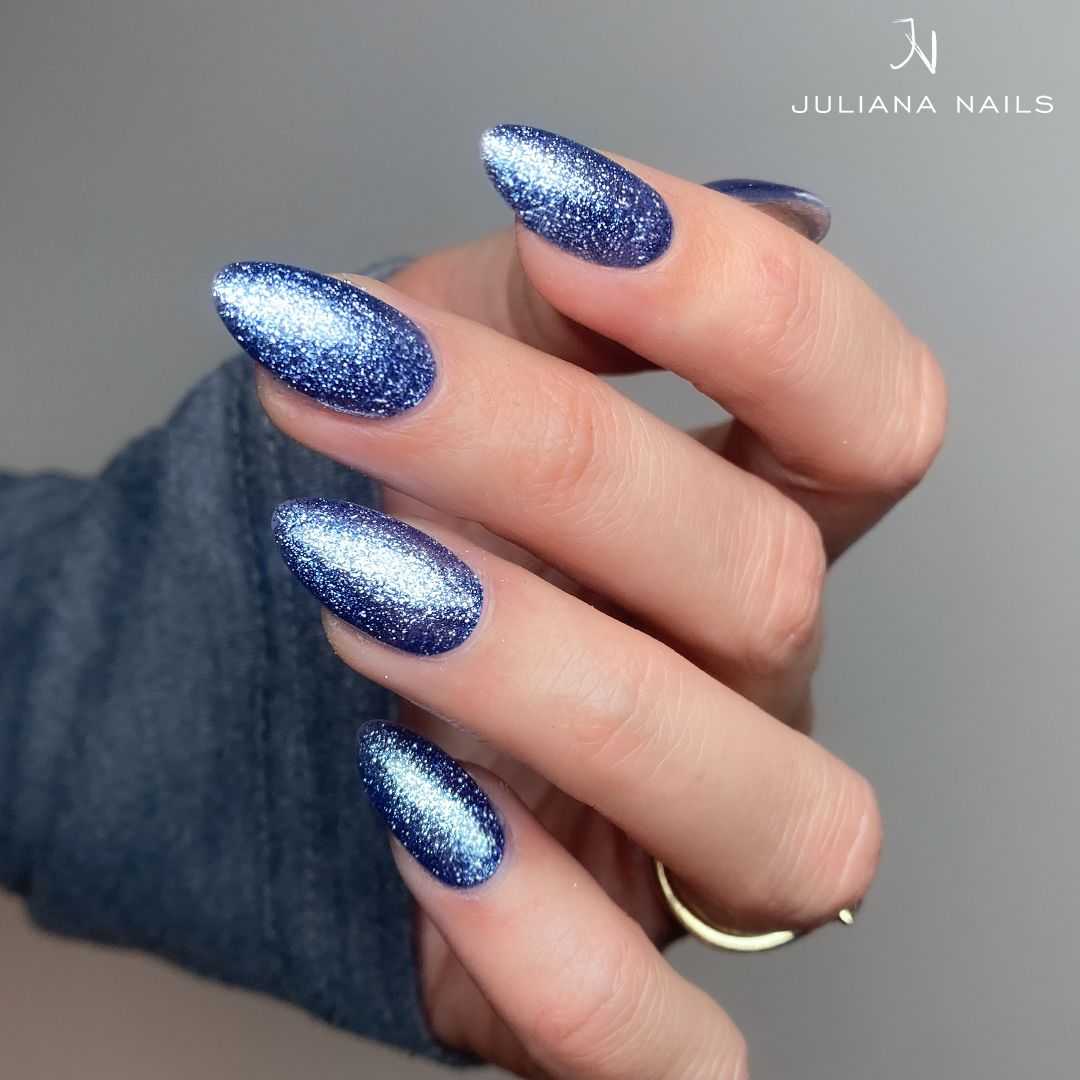 Unser Gel Lack Mountain Mind ist ein mittleres Blau mit Glitter im Sugar-Look. Perfekt für ein winterlich-funkelndes Statement.