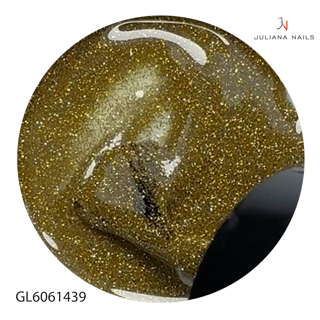 Unser Gel Lack Roller Vibes ist ein klassisches Gelbgold im Mix mit Silber-Glitter für einen coolen Kontrast.