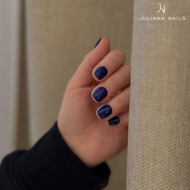 Unser Gel Lack Too Cold To Care ist ein kräftiges, klassisches Dunkelblau.