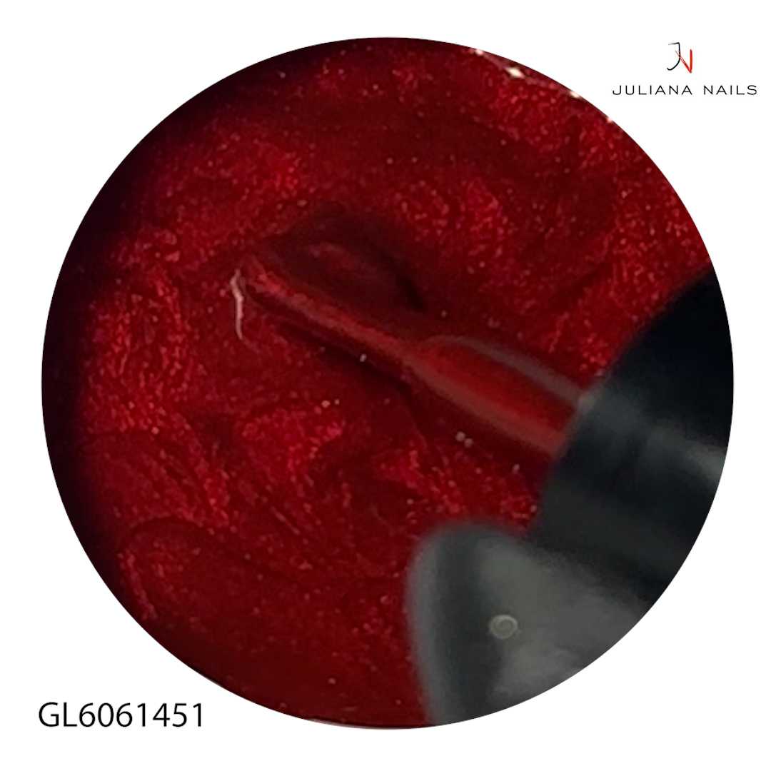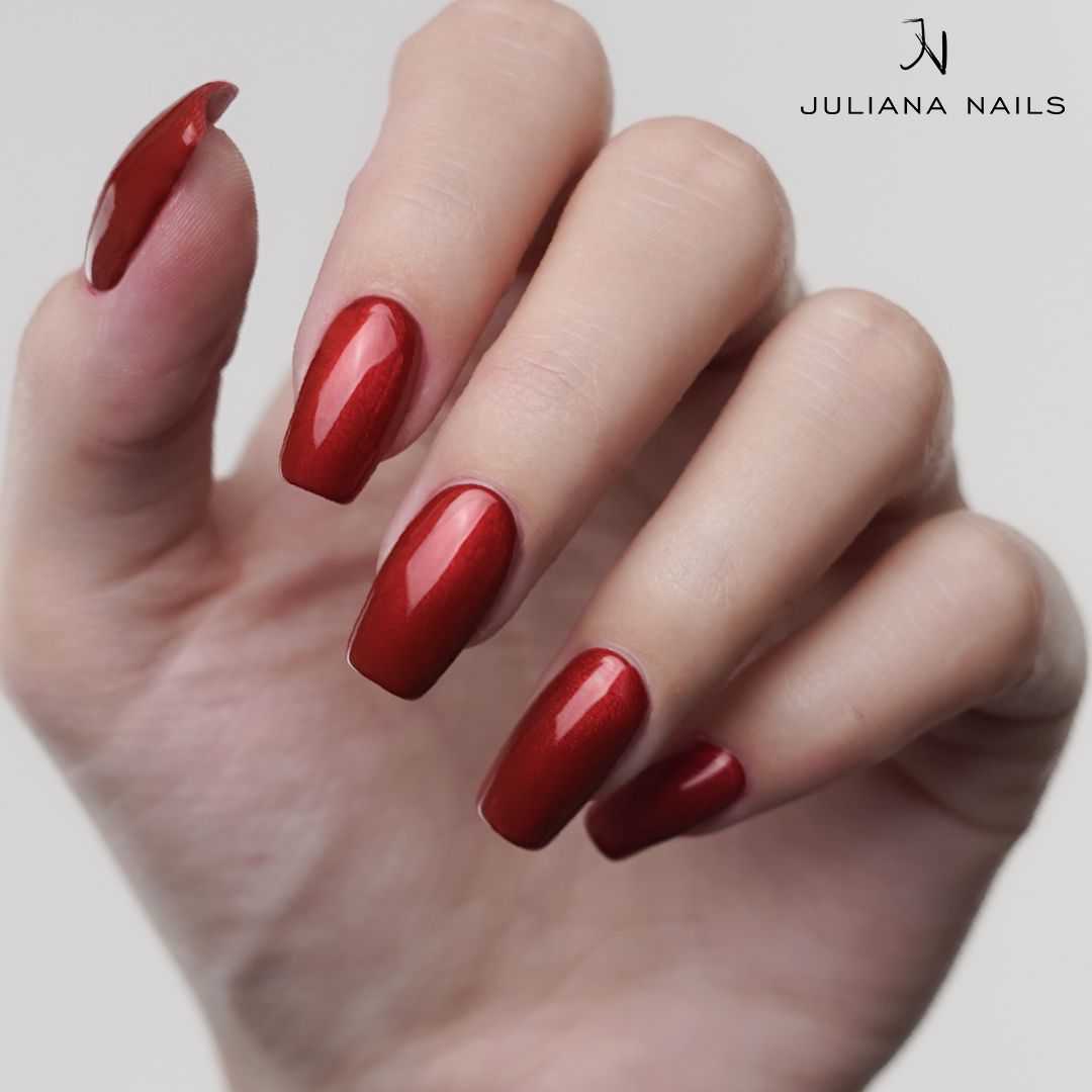 Unser Gel Lack Little Elves ist ein mittleres Rot mit metallischem Schimmer für einen festlichen Look.