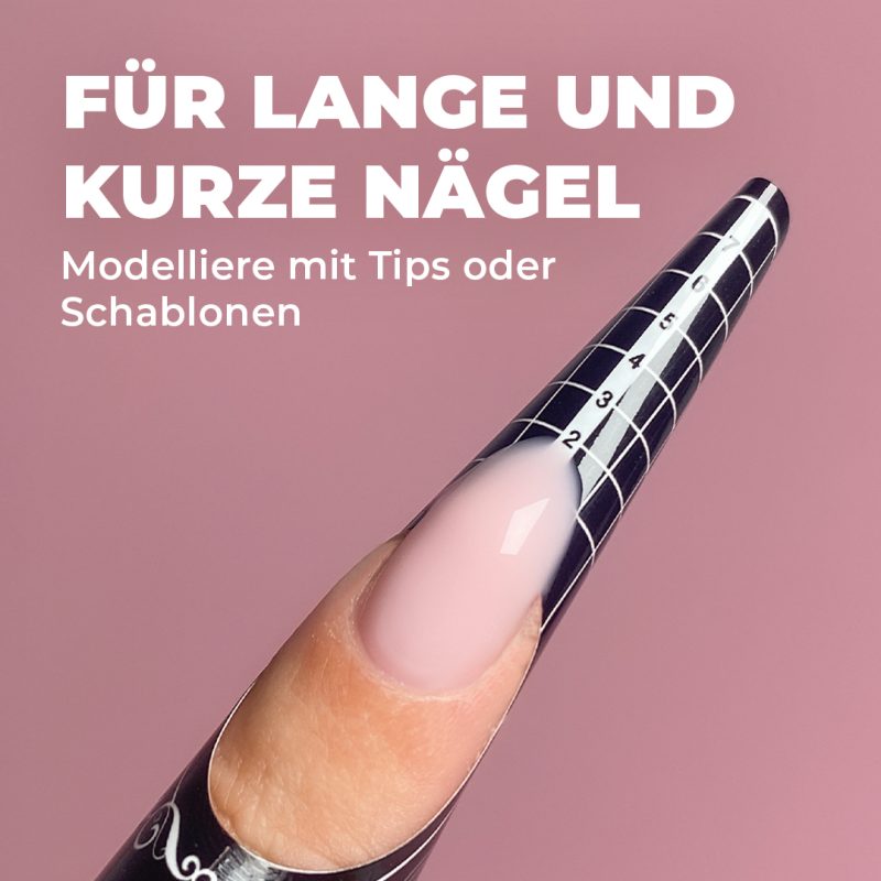 Mit dem No File Allround Gel kannst du deine Naturnägel nicht nur verstärken, sondern auch ganz einfach verlängern. Ob du dazu zu Modellierschablonen oder Tips greifst bleibt ganz dir überlassen.