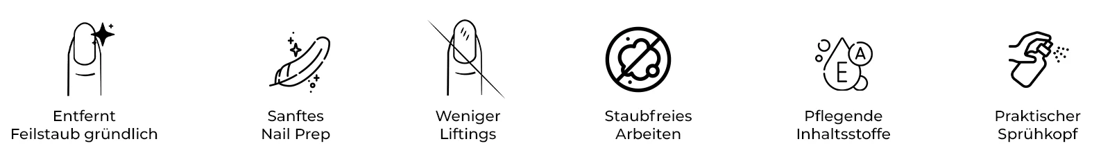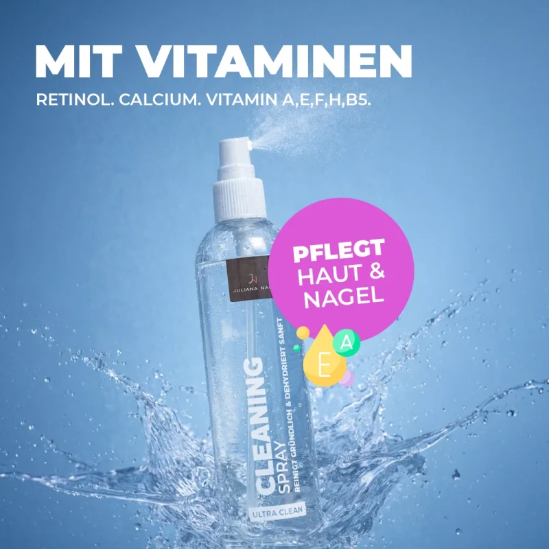 Angereichert mit Retinol, Calcium sowie den Vitaminen A, E, F, H und B5 pflegt der Cleaning Spray Nagel und Haut. Gleichzeitig bleibt die Haftung deiner Produkte unbeeinflusst – für starke Nägel mit professionellem Finish.
