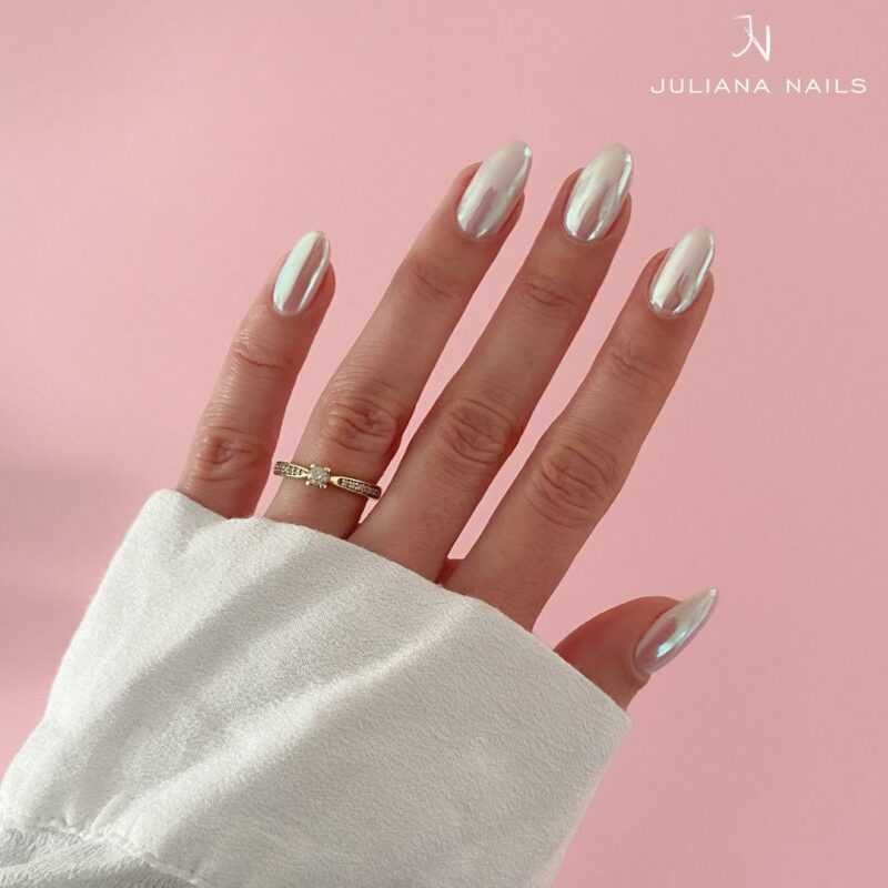 Der angesagte Glazed Aurora Look vereint zwei der schönsten Nail-Art-Trends: den schimmernden Aurora-Effekt und den spiegelnden Mirror-Finish. Mit diesem Pigment verwandelst du deine Nägel in wahre Hingucker – strahlend, glamourös und absolut einzigartig.