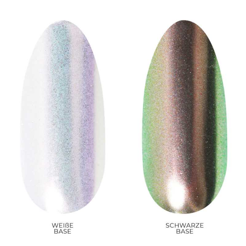 Du liebst den Glazed Donut Look und funkelnde Aurora-Nails? Dann wird dich unser Glazed Aurora Pigment begeistern! Es kombiniert den spiegelnden Mirror-Effekt mit dem Funkeln der Aurora-Pigmente und kreiert damit den neuesten Trend: Glazed Aurora Nails! Die Anwendung ist super einfach: Auftragen, einmassieren, versiegeln – fertig! Und das Beste? Je nach Untergrund entfaltet sich ein einzigartiger Farbeffekt!