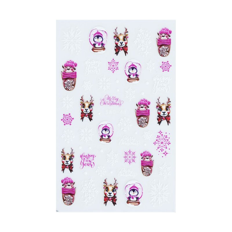Die 5D Nail Sticker – Sweet Christmas 2 enthalten süße, weihnachtliche Motive in Pink und Weiß. Du bekommst hier Pinguine, Rentiere, Schneeflocken und Schriften.