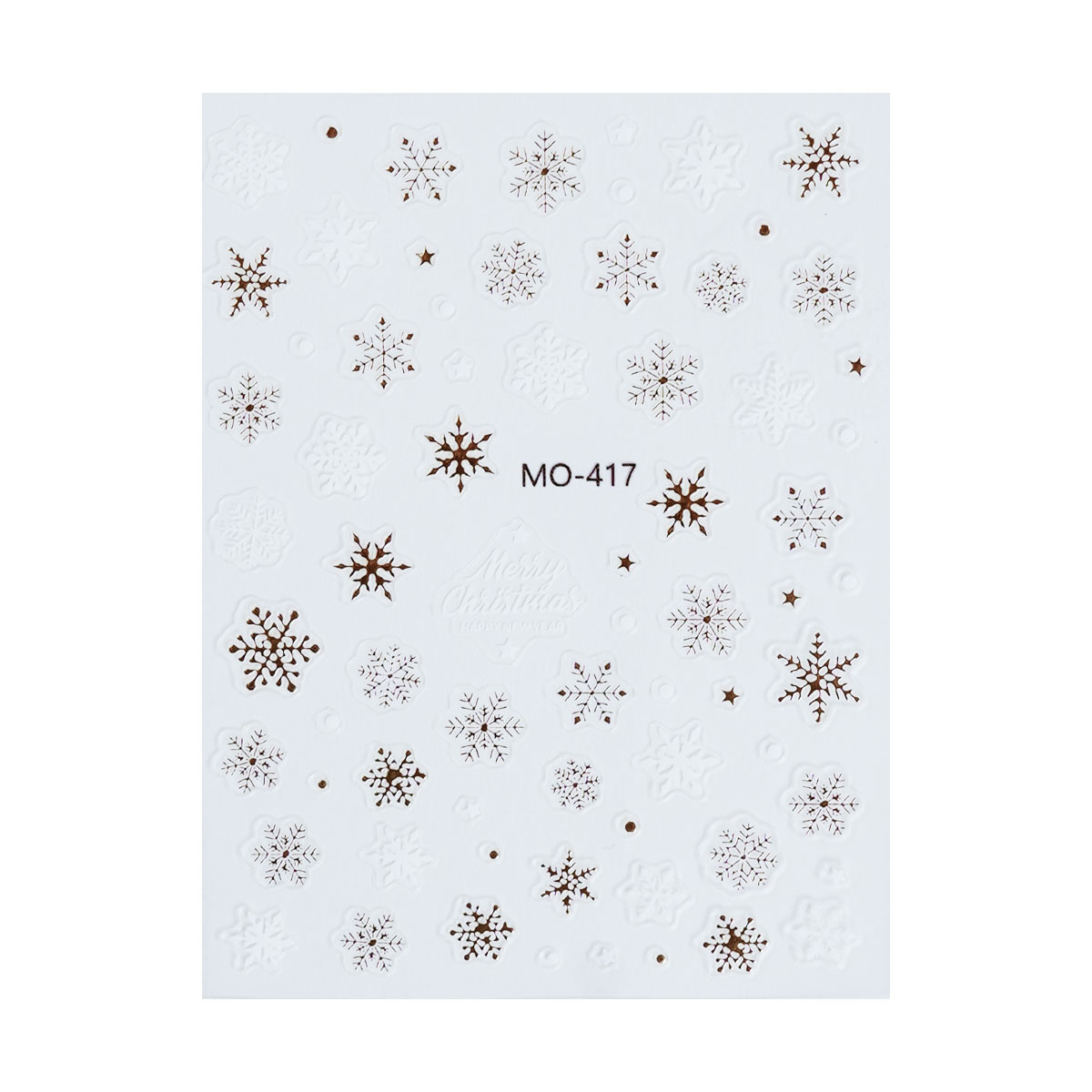 Die Nail Sticker – Magic Winter 3 enthalten Schneeflocken-Motive in unterschiedlichen Designs und Größen. Die Motive sind Weiß und Metallic Gold.