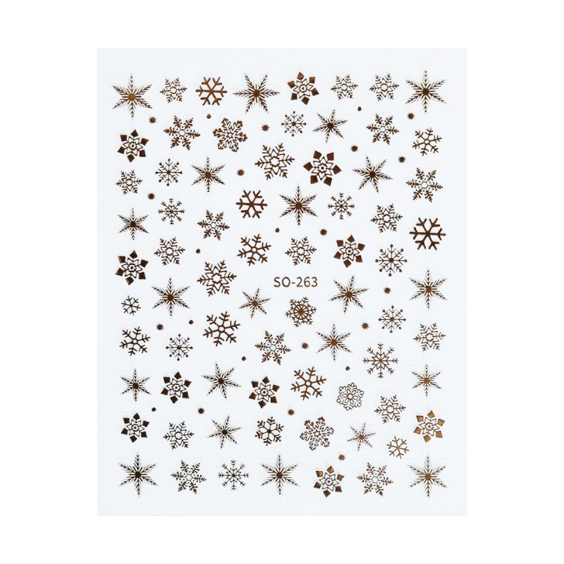 Die Nail Sticker – Magic Winter 6 enthalten goldene, glänzende Schneeflocken-Motive in unterschiedlichen Designs und Größen.