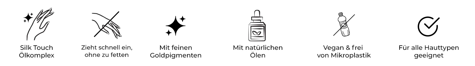 • Sofortiger Glow-Effekt – mit feinen Goldpigmenten
