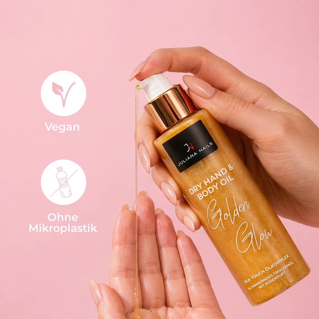 Trockene Haut ohne Glow oder fettige ร–le, die einfach nicht einziehen? Das Dry Hand & Body Oil schenkt dir intensive Pflege und einen wunderschรถnen, goldenen Schimmer โ€“ ganz ohne Fettfilm.