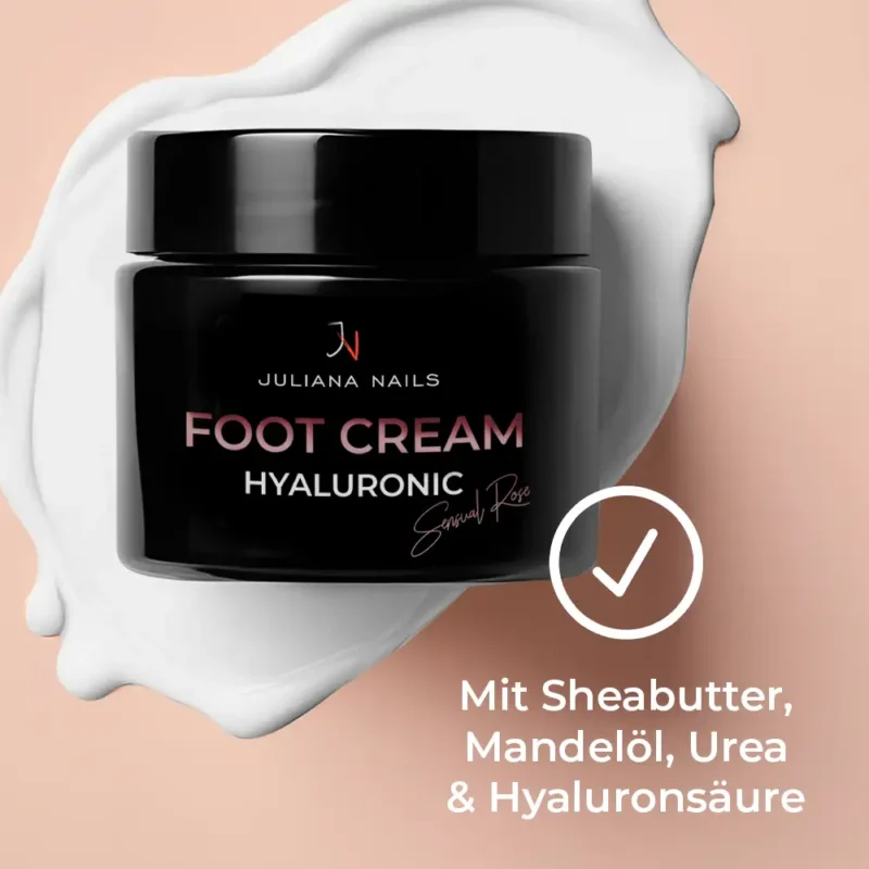 Die Kombination aus Hyaluronsäure, Urea, Shea Butter, Arganöl und Mandelöl sorgt für eine reichhaltige Pflege, die Schwielen und Hornhaut reduziert, die Hautbarriere stärkt und ein gesundes, geschmeidiges Aussehen verleiht. Ein zarter Rosenduft umhüllt deine Füße und schenkt ein sinnliches Erlebnis.