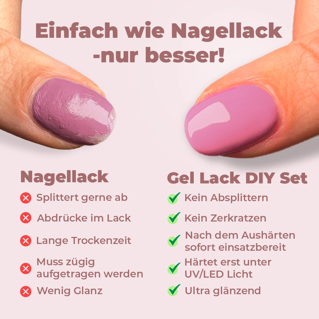 Gel Lack unterscheidet sich von normalem Nagellack durch seine innovative Zusammensetzung und längere Haltbarkeit. Während normaler Nagellack an der Luft trocknet und einige Tage am Nagel hält, wird der Gel Lack unter UV- oder LED-Licht gehärtet und bietet eine beeindruckende Haltbarkeit von bis zu 5 Wochen ohne Kratzer oder Absplittern.