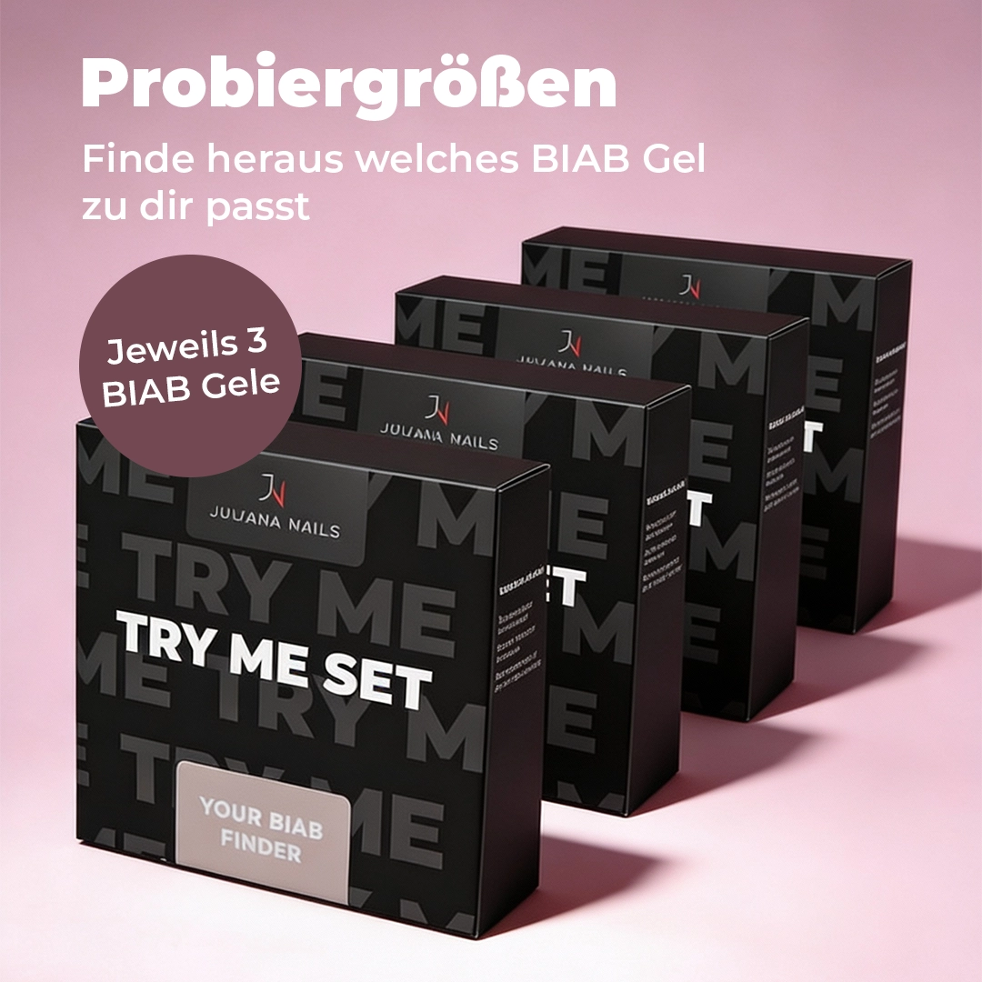 Diese Try Me Sets sind perfekt für alle BIAB-Gel-Einsteigerinnen oder unentschlossene Nail Queens. Denn sie enthalten jeweils 3 unterschiedliche BIAB Gele in praktischer 6ml Probiergröße. So kannst du ganz einfach herausfinden, welche Farbe, Textur und Eigenschaft dir am besten zusagt, ohne gleich in eine große Menge investieren zu müssen.