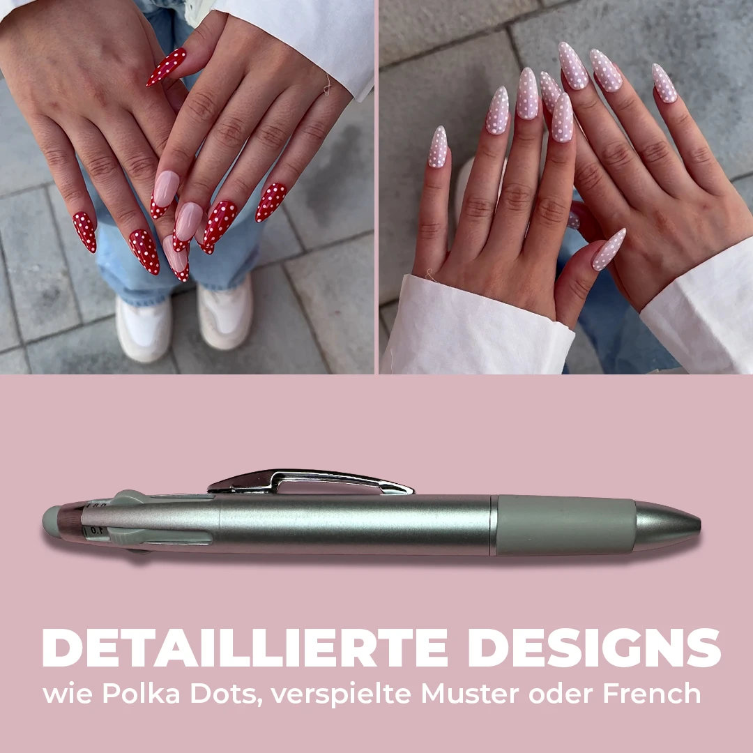 Die 4 Dotting Tools in unterschiedlichen Größen (0,8 mm – 2,0 mm) eröffnen dir jede Menge Möglichkeiten: Ob süße Polka Dots, verspielte Muster oder die perfekte Smile Line beim French Design – mit den kleinen Metallkugeln gelingt dir jedes Detail präzise und einfach.